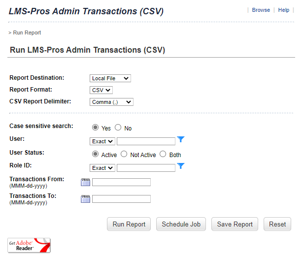 The LMS Administrator transaction report provides details on the number of transaction your Learning Administrators are performing in a given period. This report is very useful to help identify Administrator accounts that might no longer be needed.