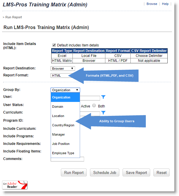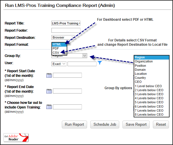 • Two reports designed for administrators to manage and analyze training compliance effectively.