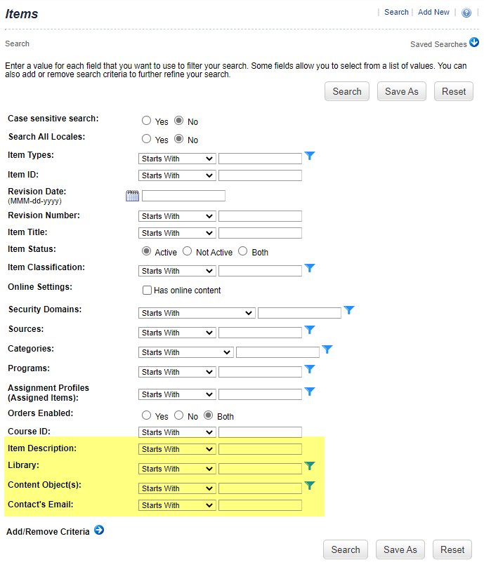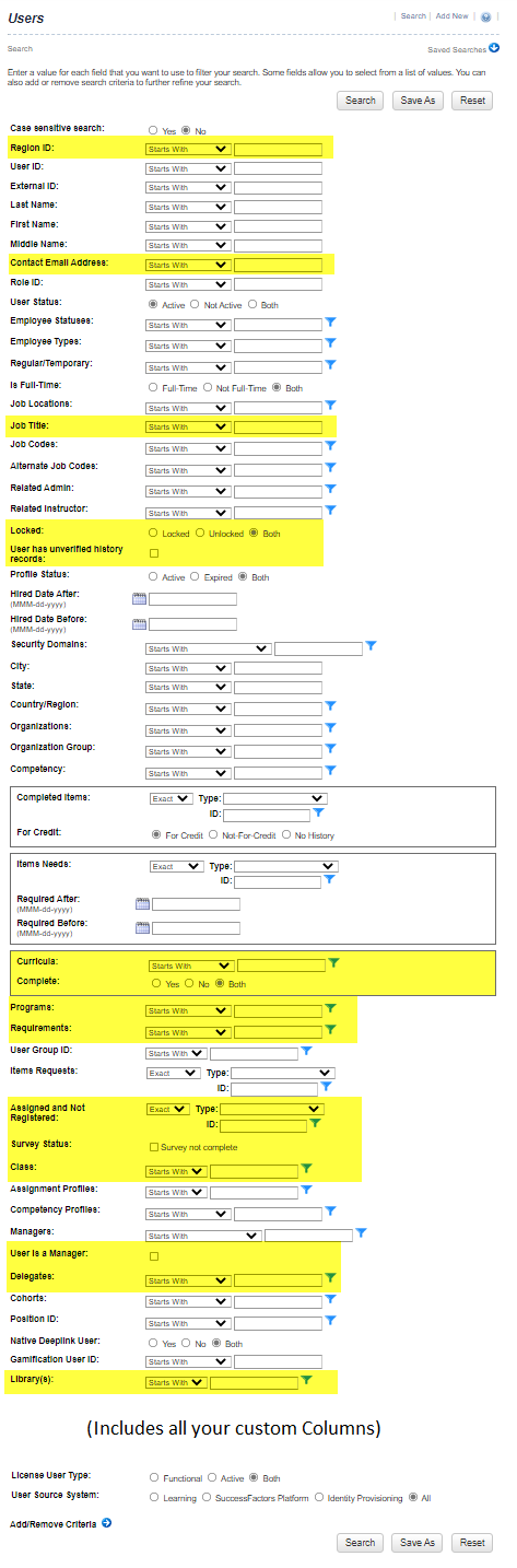 User and Item Search Selectors provide your LMS Administrators increased search attributes.
